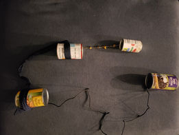 My Dad and I (the black bean can and the bigger of the two tomato cans) are connected by a thick ribbon. Our communication is smooth and we are deliberately tied together because we help and support each other and are integral to each other's checks of growth and staying afloat. My Dad is the can of black beans because his energy, humor and personality are much darker than my Mom's, who is the brown beans. She is lighter and more sensitive, like me.